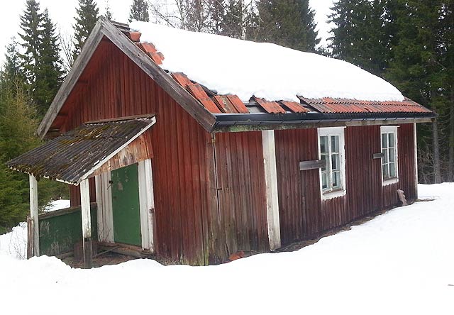 The cabin is a typical Swedish farm dwelling, wooden and red in color with white corners. Its primitive construction makes me guess it was built in the late 1800-hundreds.