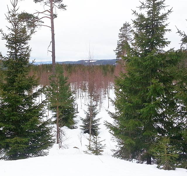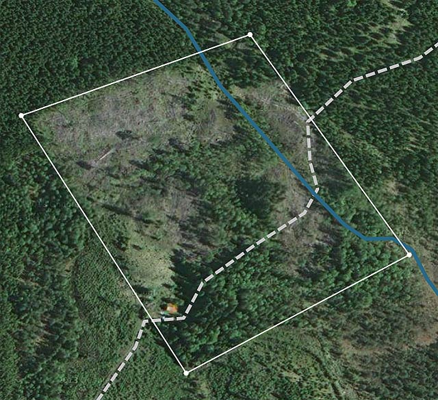 Half the property is cleared spruce forest, that was cut down several years ago. The rest is 80 year old spruce mixed with birch and other broad-leaved trees, with a total standing log volume of 450 cubic meters, which is around 1,000 trees. So there is plenty of construction and fire wood available.