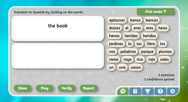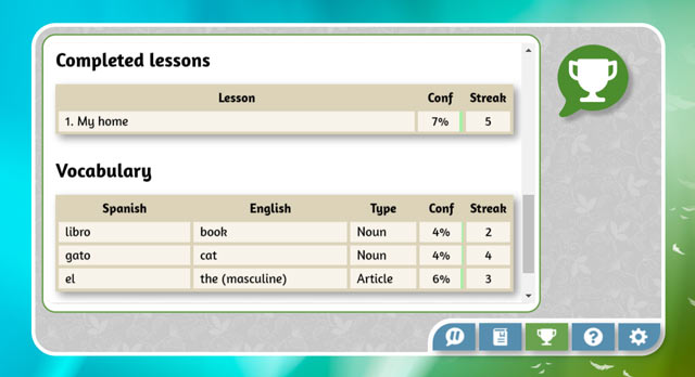 It also keeps track of your confidence in each word and grammar rule, so it can use spaced repetition.