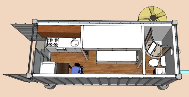 Would you want to live on 12 square meters? I was thinking about this as I got busy drawing up a 20 foot shipping container home in Sketchup.