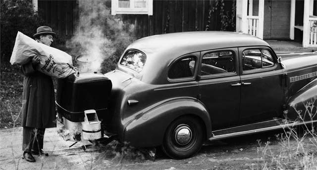 Below: a gengas (woodgas) unit in Sweden during the 1940s.