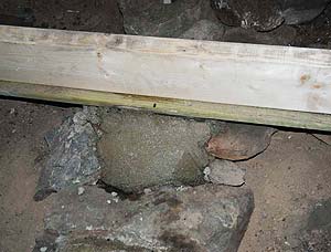 My plan was to dig down concrete footings to support the joists, but the space below the floor did not allow it.