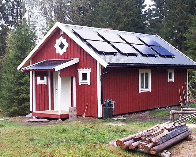 - 8 x Swemodule, 250 W solar panels, manufactured in Glava outside Arvika, Sweden. These are discount modules, rejected from production because of minor aesthetic problems.
