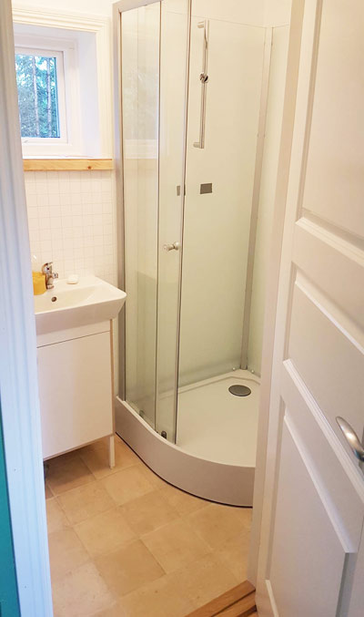 Although I still have to heat the shower water on my stove, this was a huge upgrade for me, because it meant no more showers outside in the rain, snow and strong winds.
