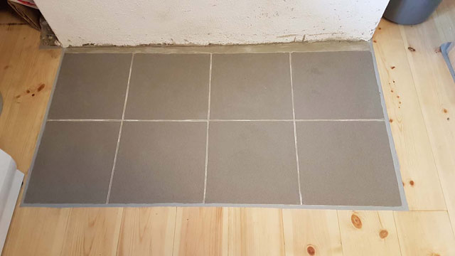I prepared the concrete foundation of the fire wood boiler, and finished off with some nice looking tiles.