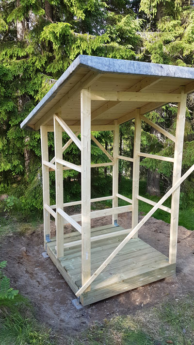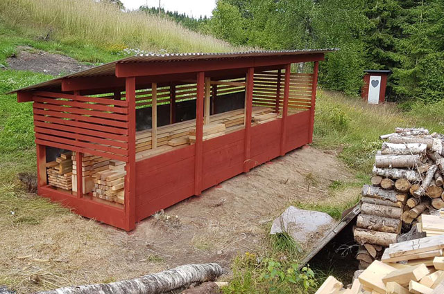 I had a lot of old recycled wood, not really good for any important projects, so I decided to build a storage shed for firewood from it. Now temporarily used for storing construction wood.