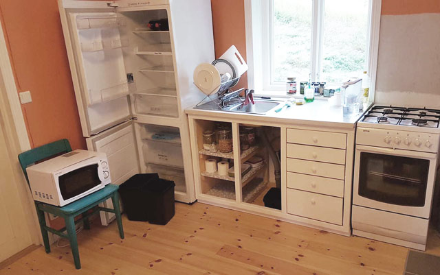 I drilled two 100 mm holes through the walls; one in the bathroom and one in the kitchen, to provide ventilation.