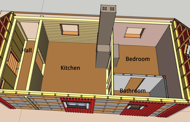 I finished the walls, windows and trim, and then built the kitchen sink frame with its drawers.