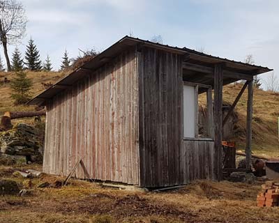 This old shed was my good companion for the first two years. It was my outhouse, and also stored lots of building equipment.